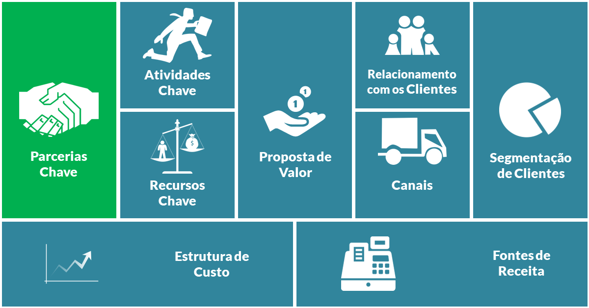 No Canvas, o bloco de Parcerias Chave está diretamente ligado à sustentação das operações e à viabilidade do negócio. Enquanto os Recursos Chave referem-se aos ativos essenciais para a operação, as Parcerias Chave envolvem quem fornecerá ou apoiará a aquisição desses recursos.